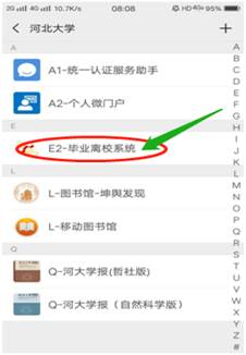 步骤四、验证成功后,进入“河北大学微门户”毕业离校系统。