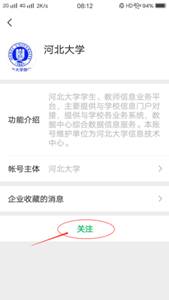 步骤二、关注“河北大学微门户”。