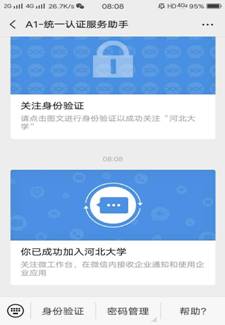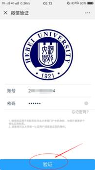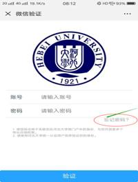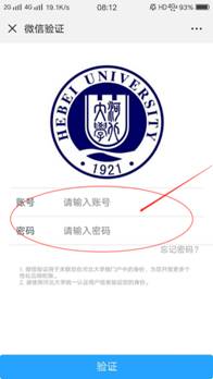 注1:初次使用“河北大学微门户”,需要进行认证,请根据提示输入学工号及统一认证密码。