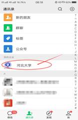步骤三、打开微信通讯录,在我的企业中找到“河北大学”