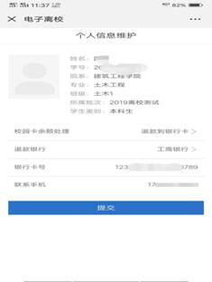 步骤二、离校系统信息填写,请务必填写正确的手机号及银行卡信息。